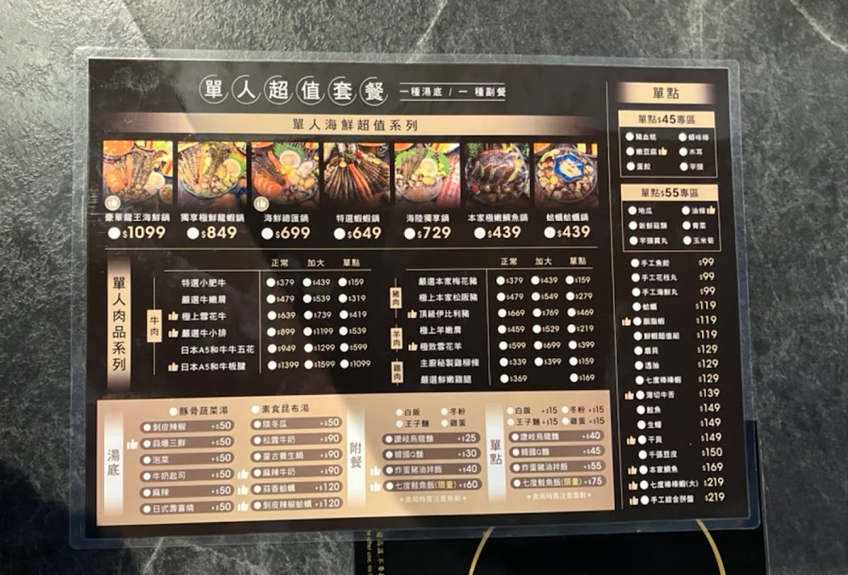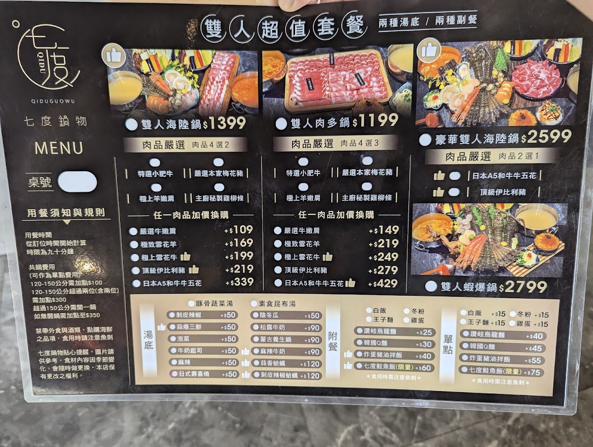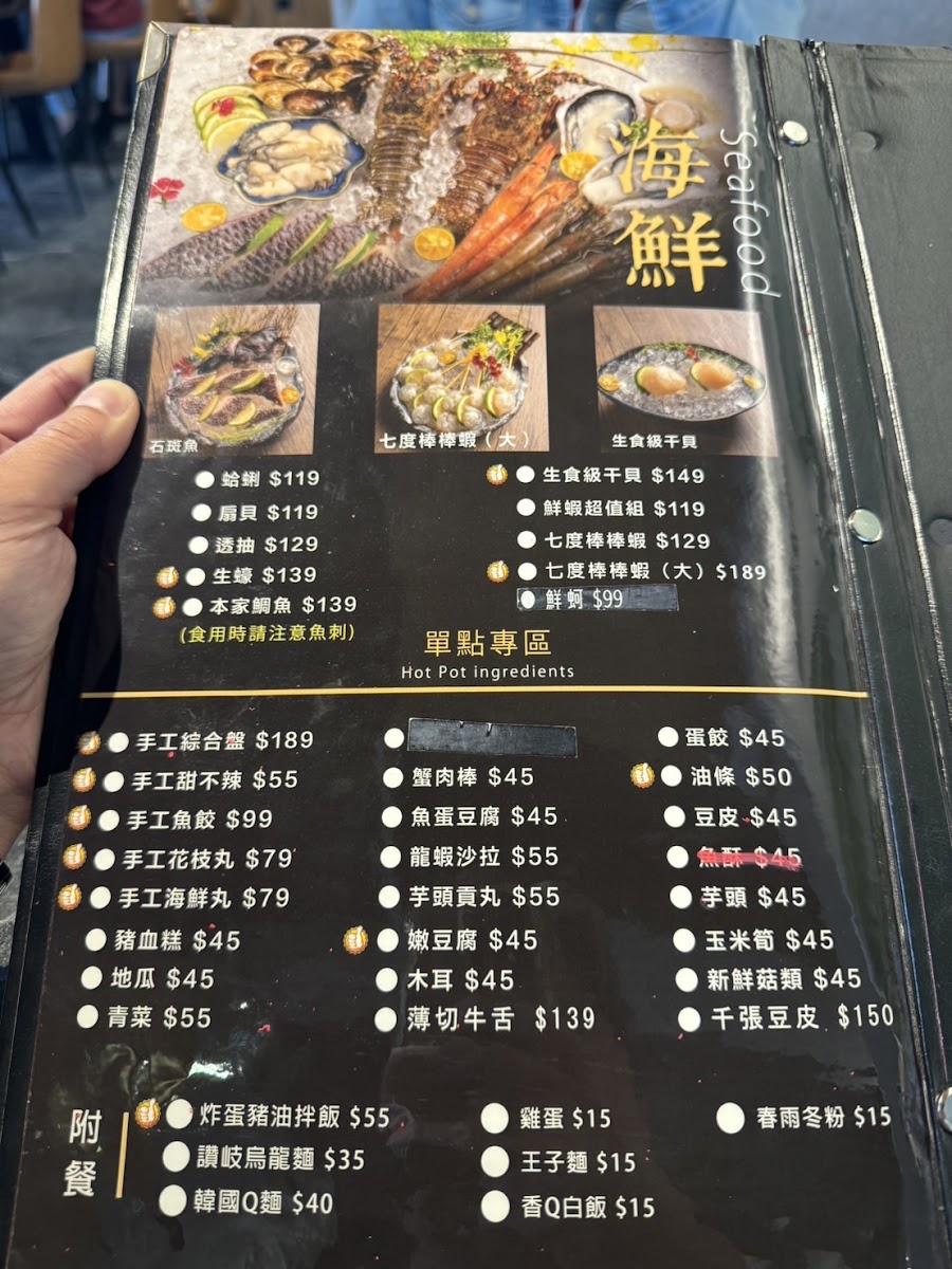 Qiduguowu offers a thoughtfully curated hot pot menu that balances fresh ingredients with comforting flavors. The selection centers around individual and shared hot pot experiences, featuring a variety of broths such as the creamy麻辣牛奶鍋 and traditional壽喜燒 that invite diners to settle in and savor their meal at a relaxed pace.